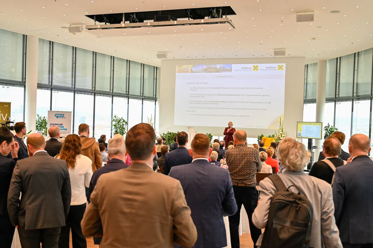 Auf großes Interesse stießen die sieben Fachvorträge und eine abschließende Talkrunde zu den wichtigsten Fragen rund um das Thema Immobilien. Marion Weinberger-Fritz (Raiffeisen Vorsorge Wohnung) und Andreas Unger (LBG Burgenland) referierten zum Thema Vorsorgewohnung und deren steuerliche Rahmenbedingungen. Klaus Weyerstraß vom IHS beleuchtete die konjunkturellen Perspektiven für Österreich 2024 und 2025 und Barbara Span (Raiffeisen Wien-Meine Stadtbank) erläuterte, worauf es bei der Wohnbaufinanzierung ankommt. Nach einem kompakten Überblick über die Förderungen im Wohnbereich von Szilvia Gergely-Seuss (Raiffeisen Wien-Meine Stadtbank) berichtete Michael Mack von Raiffeisen Immobilien über die Trends auf dem Immobilienmarkt in Niederösterreich und Wien. Andreas Zahner von UIV Urban Innovation Vienna informierte abschließend zum Thema „Raus aus Gas“. Bei der nachfolgenden Talkrunde nutzten zahlreiche Teilnehmer die Möglichkeit zum angeregten Meinungsaustausch mit den Fachleuten am Podium.