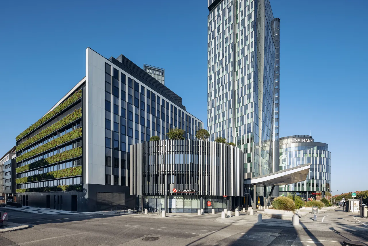 Von den insgesamt 17.600 m² Gesamtfläche sind aktuell nur mehr zwei Restflächen im Umfang von jeweils knapp 1.000 m² verfügbar. Auf den übrigen Flächen hat sich bereits ein attraktiver Mietermix eingemietet, darunter unter anderem Cineplexx/Constantin Film Holding, Compax Software Development und Hellmann Worldwide Logistics.