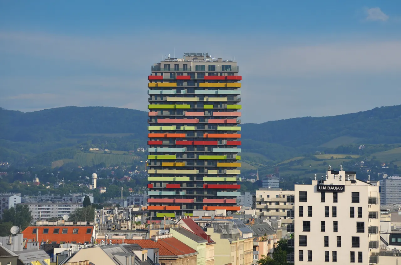 Das Angebot wird durch ein umfangreiches Spektrum an gemeinschaftlich nutzbaren Einrichtungen ergänzt: Co-Working-Space, Fitness- und Yoga-Studio, Heimkino, Podcast-Aufnahmeraum, Spielzimmer sowie ein stilvoller Dining-Bereich für private Veranstaltungen stehen den Bewohnerinnen und Bewohnern zur Verfügung. Zwei großzügige Dachterrassen, eine davon im 29. Stock mit spektakulärem Panoramablick über Wien, schaffen zusätzliche Wohnqualität.