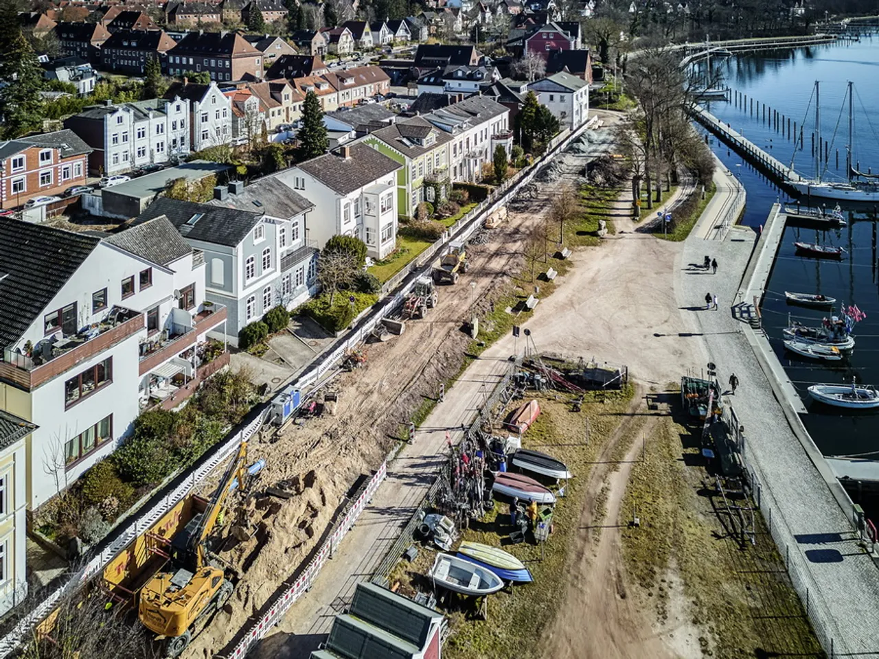 Im holsteinischen Neustadt stehen in den kommenden Jahren etliche Sanierungen im Abwassernetz an. Eines der ersten Projekte ist die rund 200 Meter lange Straße „Am Hafensteig“. Hier sind die Schmutzwasserleitungen in einem besonders schlechten Zustand und die Regenwasserrohre müssen aus hydraulischen Gründen vergrößert werden.