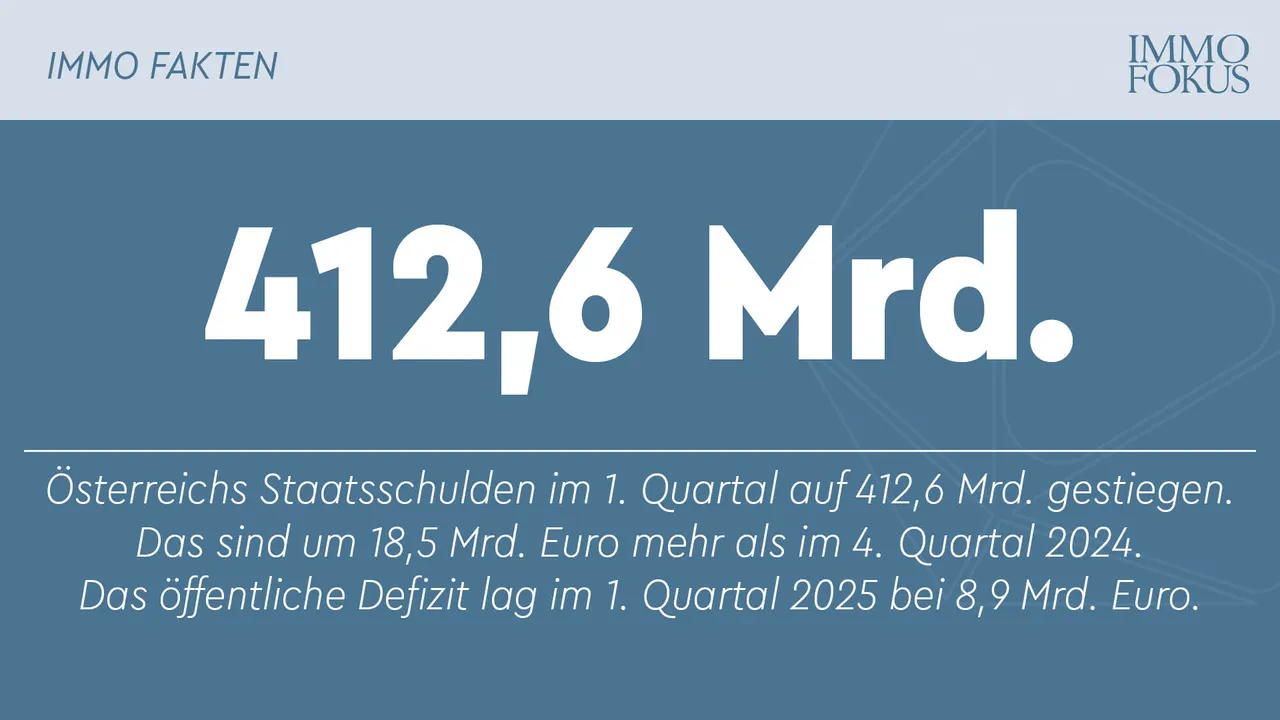 Öffentlicher Schuldenstand Ende März 2025 bei 412,6 Mrd. Euro