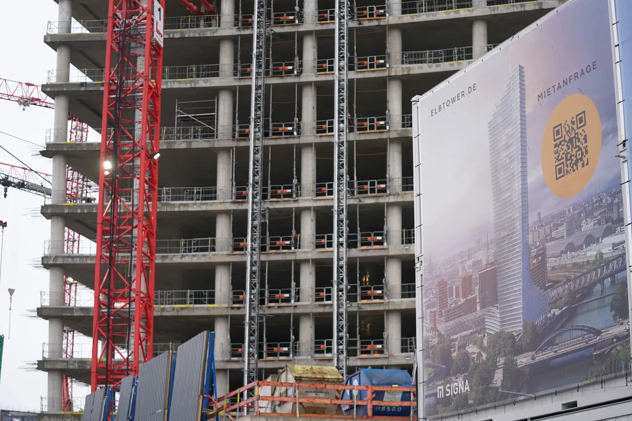 "Sollte die Bautätigkeit zeitnah wieder aufgenommen werden, entspricht der Baufortschritt nach wie vor dem vereinbarten Zeitplan", hieß es weiters. Nach dem Kaufvertrag, den Signa mit der Stadt Hamburg geschlossen hat, müsse der Rohbau innerhalb von 52 Monaten nach Beginn des Bauvorhabens und nach Erhalt der Baugenehmigung fertiggestellt werden. "Da der Grundstückskaufvertrag, wie bei Verträgen dieser Art üblich, einen zeitlichen Puffer vorsieht, fällt eine Vertragsstrafe an, wenn die Fertigstellung des Rohbaus nicht innerhalb von 61 Monaten erfolgt." Die Baugenehmigung für das von Signa auf 950 Millionen Euro Baukosten taxierte Projekt war im März 2022 erteilt worden. Demnach müsste der Rohbau bis Mitte 2026 stehen.