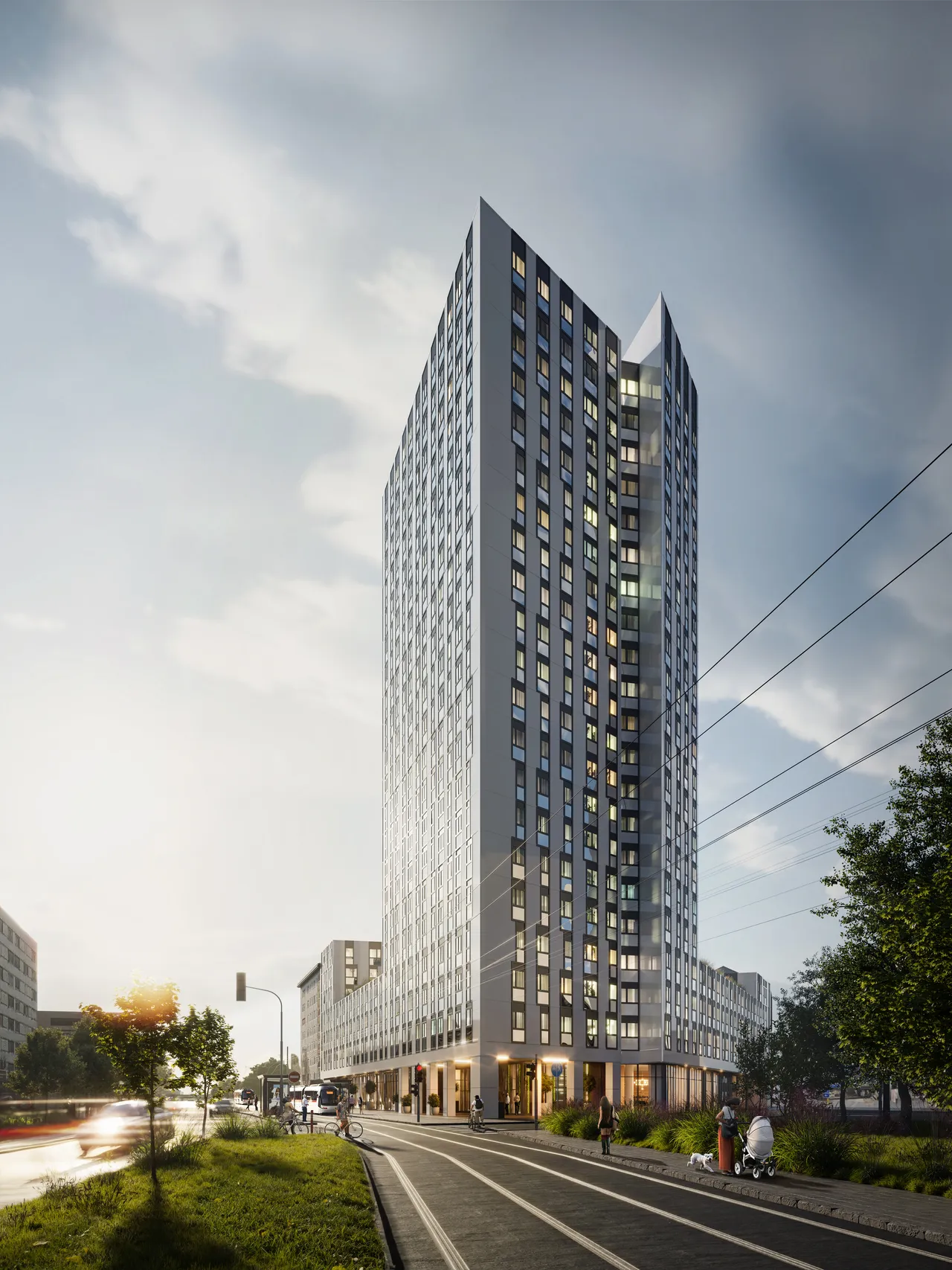 Auf 21 Stockwerken stehen 328 Wohneinheiten mit Wohnflächen zwischen 32 und 77 m² zur Verfügung, alle ausgestattet mit Einbauküchen sowie einer Loggia, einem Balkon oder einer Terrasse mit Eigengarten. Die eindrucksvolle Architektur mit großzügigen Fenstern und funktionalen Grundrissen sorgt für eine helle, freundliche Atmosphäre. Zusätzlich bieten attraktive Dachterrassen, sogenannte Möglichkeitenräume und Gewerbeflächen im Erdgeschoß den Bewohnern zusätzlichen Raum zur individuellen Entfaltung und Begegnung. Die Möglichkeitenräume können von den Bewohnern flexibel genutzt werden, zum Beispiel als Co-Working-Space oder auch als Freizeit-, Yoga- und Fitnessraum. Im Erdgeschoß wird eine Filiale der Sparkasse OÖ eröffnen und das Retail-Team der EHL Gewerbeimmobilien ist mit der Vermarktung einer weiteren Geschäftsfläche im Erdgeschoß beauftragt, für die bereits ein interessanter Mieter in Aussicht steht.