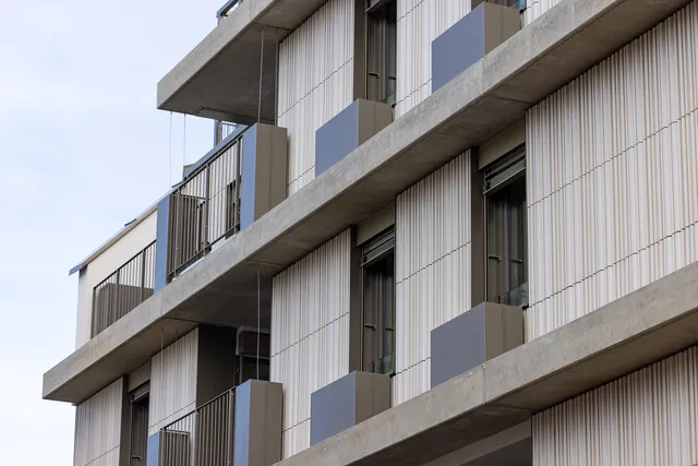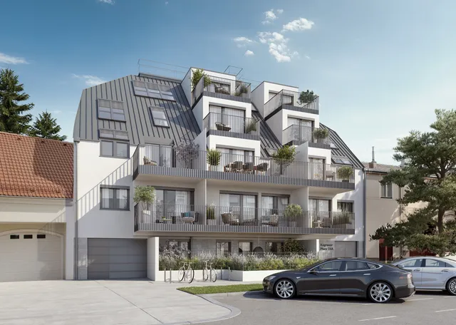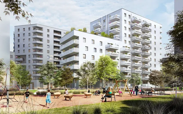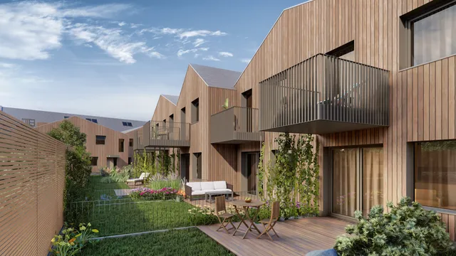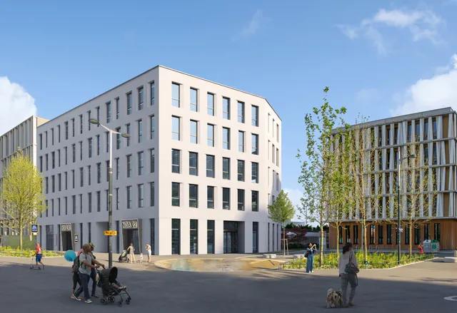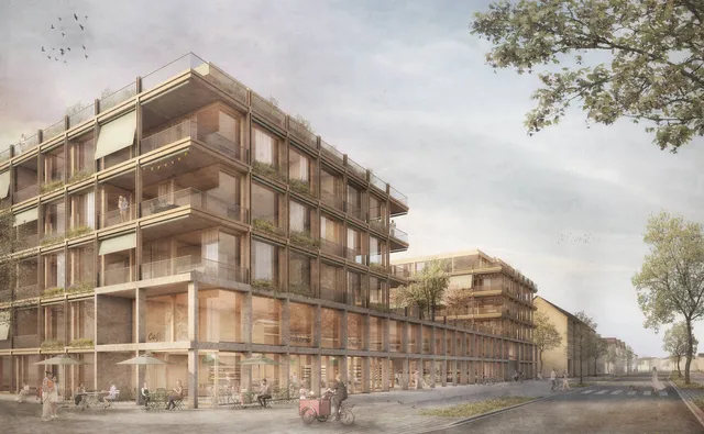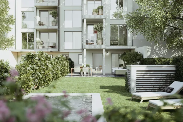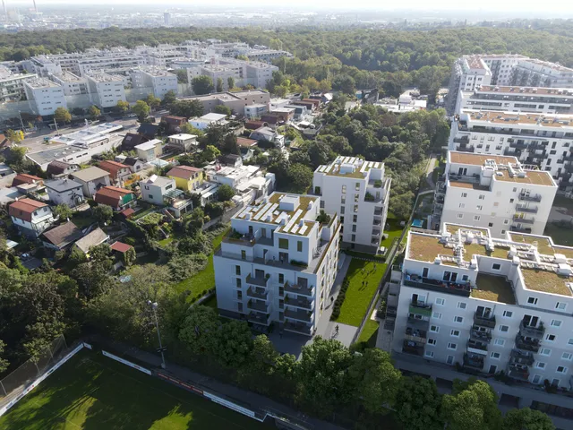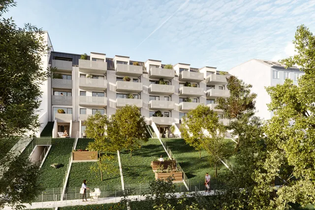 Neben 54 variantenreichen Wohnmöglichkeiten bietet das Projekt gemeinschaftliche Dachgärten für Urban Gardening und Begegnungszonen...